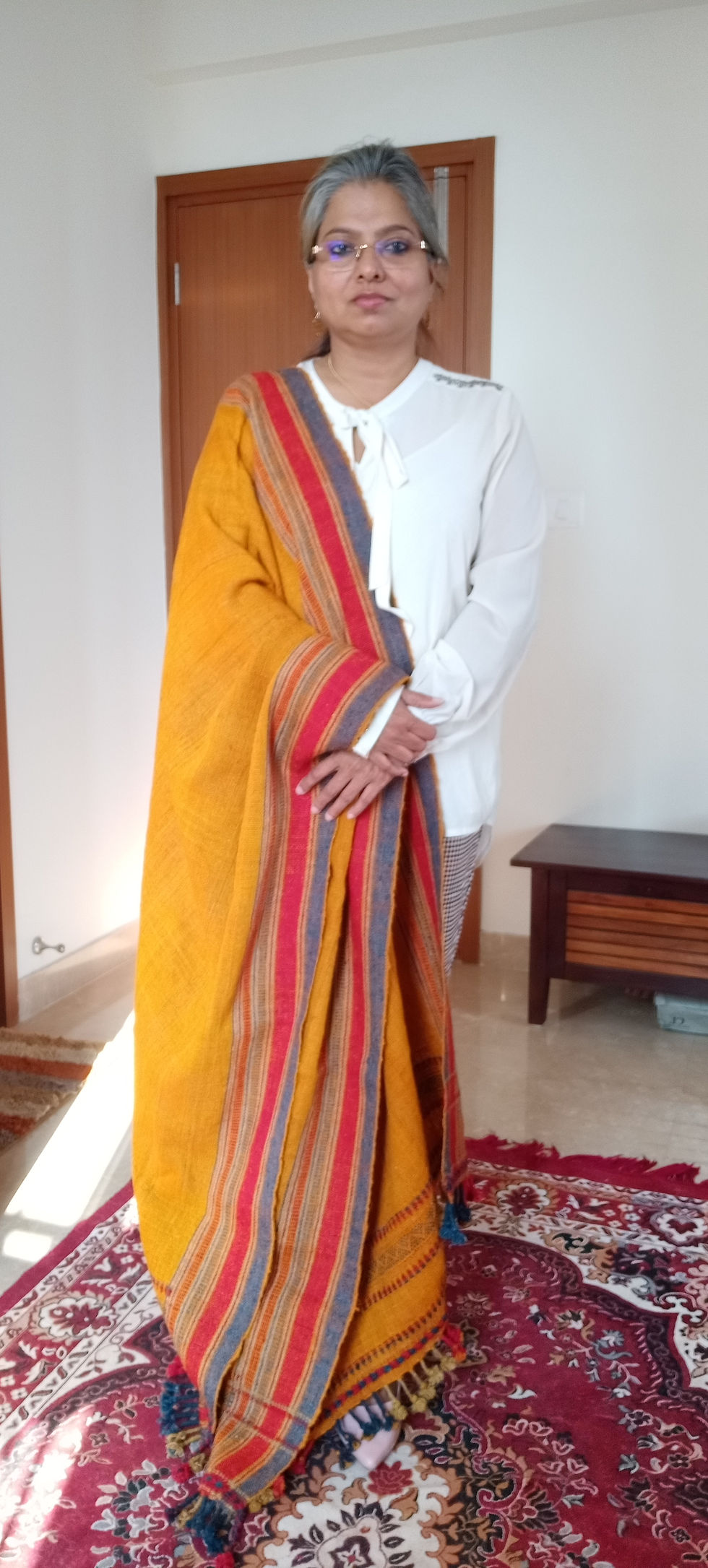'Gerua' Indian pure wool handwoven Bhujodi wrap