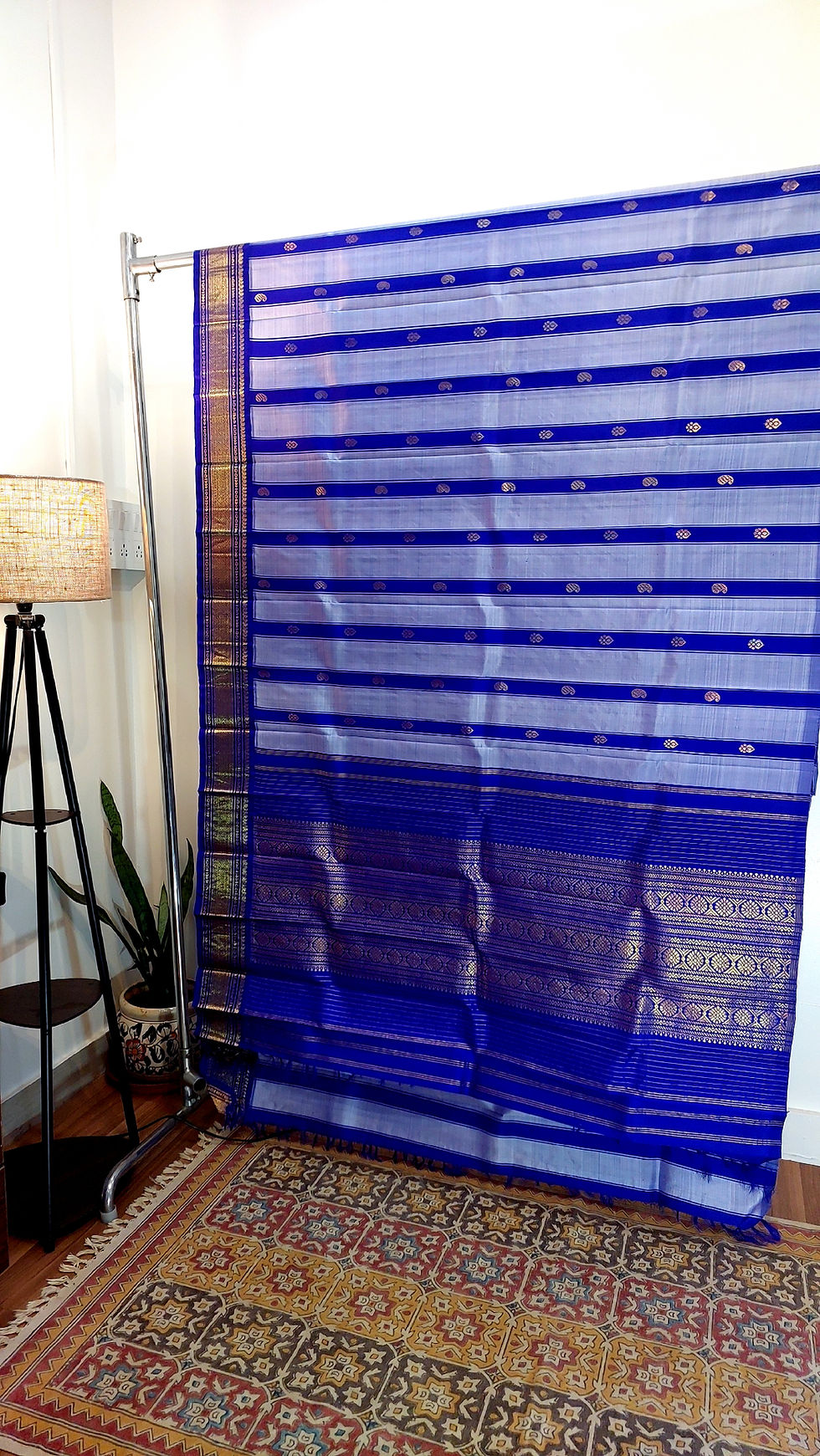 Purple Powder blue Kanjivaram Korvai Handloom pure zari silk