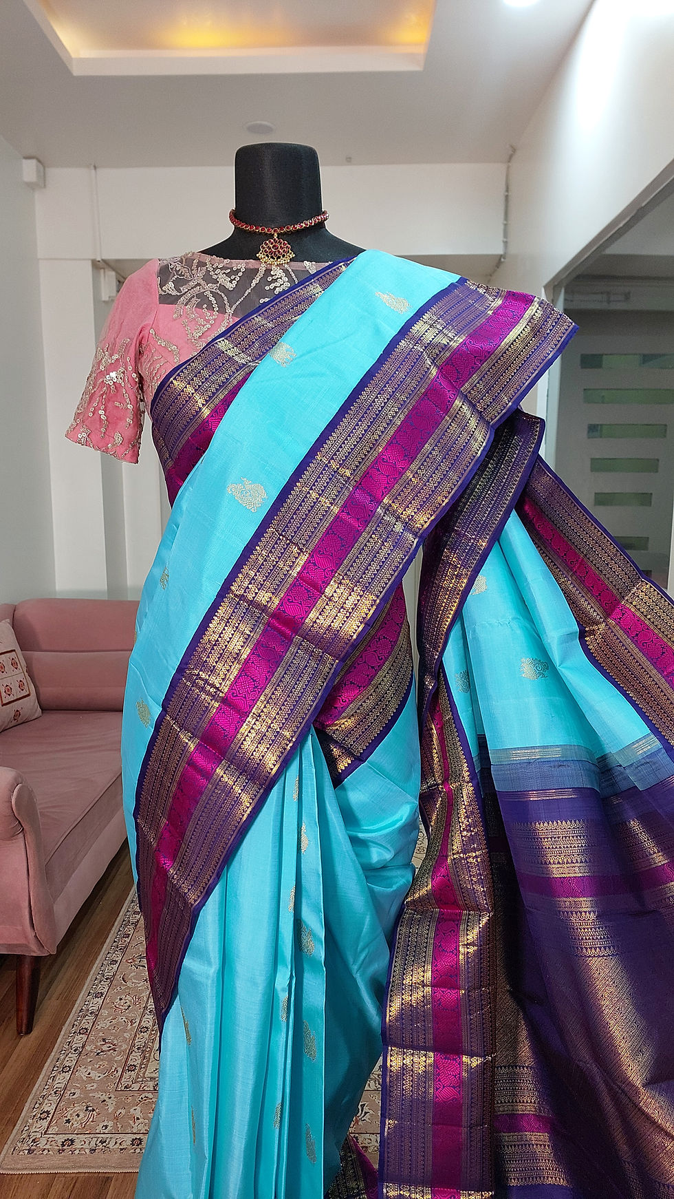 'Rangoli' Purple and Blue half and half Kanchipuram handloom